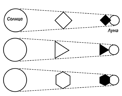 Такое искусственное солнечное затмение не может, однако, дать того, что наблюдается при заслонении Солнца Луной. Дело в том, что лучи Солнца, прежде чем достигнуть нашего глаза, проходят через земную атмосферу и рассеиваются здесь частицами воздуха. Оттого-то небо днем и кажется нам светлым голубым сводом, а не черным, усеянным звездами, каким представлялось бы оно нам даже днем при отсутствии атмосферы. Закрыв Солнце кружком, но оставаясь на дне воздушного океана, мы хотя и защищаем глаз от прямых лучей дневного светила, однако атмосфера над нами по-прежнему залита солнечным светом и продолжает рассеивать лучи, затмевая звезды. Этого не бывает, если заслоняющий экран находится за пределами атмосферы. Луна есть именно такой экран, находящийся в сто раз дальше ощутимой границы атмосферы. Лучи Солнца задерживаются этим экраном до того, как проникают в земную атмосферу, и рассеивания света в затененной полосе поэтому не происходит. Правда, не полностью: в область тени проникают все же немногие лучи, рассеиваемые окружающими светлыми областями, и потому небо в момент полного солнечного затмения никогда не бывает так черно, как в полночь; звезды видны только самые яркие.