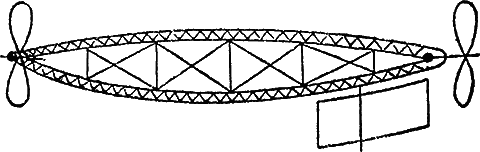Особый вид летательного аппарата представляет проектируемый Циолковским исполинский гидроплан-крыло, предназначенный для перелетов над океанами и пустынями через низшие слои атмосферы. Приводим его описание.