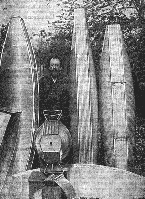 Циолковский показал мне новые простые приборы, которые позволяют определять зависимость сопротивления воздуха от формы аэростата.