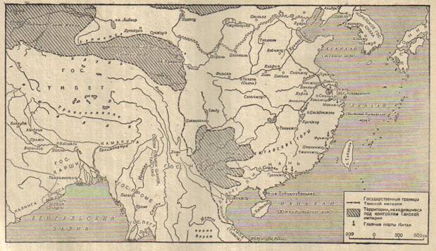 При двух династиях – Суйской (581–616) и Танской (618–906), Китай снова стал единой и мощной державой, причем при первых императорах Танского дома границы страны вновь значительно расширились, и во второй половине VII века Китайская империя простиралась от Тихого океана до Тянь-Шаня и от Хингана до Южного Вьетнама. Танская эпоха – период стремительного расцвета Китая.