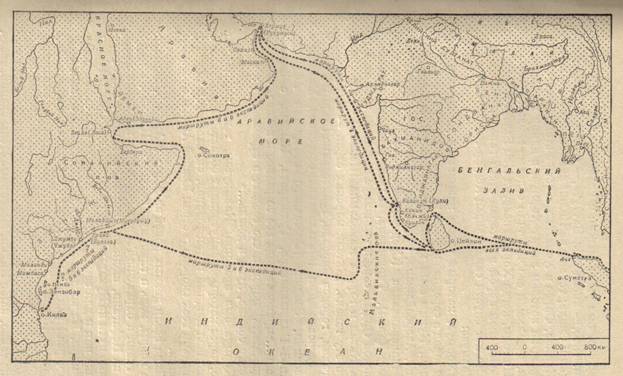 Первые три экспедиции не заходили дальше Каликута. Бросок в воды Передней Азии, очевидно, с успехом можно было осуществить, лишь предварительно полностью освоив китайско-индийскую трассу.