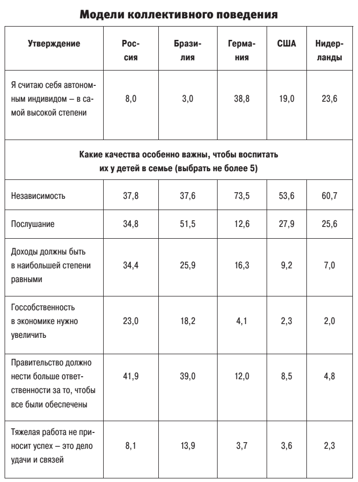 Наш знаменитый коллективизм – внушенный нам с детства. Наша особая духовность и соборность – выдумка. Они оборачиваются самым отчаянным индивидуализмом, гораздо худшим, чем в «золотом миллиарде». Это коллективизм служилого человека. Подчинения интересам государства, а не общества. Служения власти, тоннам, баррелям, мегаваттам. Качество жизни – по остаточному принципу. Россия – на 96—100-м месте в мире по продолжительности жизни (2021).