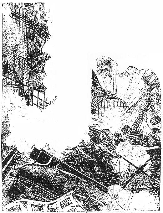 Компрессоры оглушительно, яростнее прежнего, грохотали внизу. Огромное здание сотрясалось. Помощник долго по возвращался.