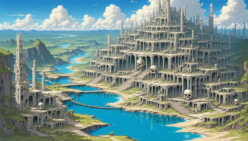 Я увидел полупрозрачный изумрудный шар в центре комнаты, потянулся к нему и… На меня нахлынули образы. Чудовищный город, посреди улиц которого высятся изогнутые белые шпили… Я не сразу понял, что шпили – это кости доисторических животных. Размер этих павших тварей потрясал воображение. Дома либо срослись с костями, либо были вырезаны внутри, между ними были переброшены мосты и целые галереи… По улицам ходили странные существа, смахивающие на эльфов – невероятно худых, даже тощих, с белыми волосами и тёмно-фиолетовой кожей.