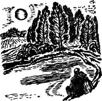 Мы вышли за ворота. Кроваво-красный шар солнца поднимался над далекими лесами. Природа пробудилась от ночного сна, в воздухе тянуло сыростью и прохладой. Ветра не было, деревья стояли серьезные и задумчивые. В ветвях щебетали одинокие птицы. Повсюду печать осени.