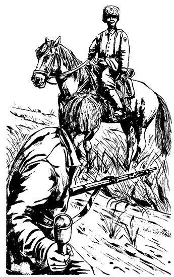 С песней, стараясь кричать как можно сильнее, мы равняемся с сотней казаков. Офицер наклоняется, что-то спрашивает. Акулов берет под козырек. Мы орем так, что того гляди лопнут глотки. Акулов кричит, показывая рукой на село: