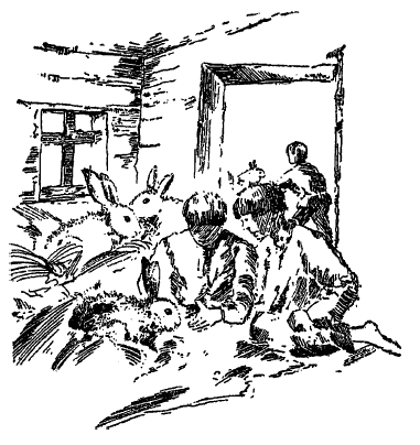 Кроликов устроили в старой бане, которую еще осенью хотели ломать. А не сломали только потому, что осенью по случаю недорода было не до бани. Большеголового самца поместили в парильне, самок в предбаннике. Ребята натащили в баню ворох соломы, сена, моркови, капусты и картофеля. В тот же день в баню пришли оповещенные Мишкой «канпаньоны» и притащили печеный хлеб, соленые огурцы, меду и свеклу. Мед и соленые огурцы кролики вежливо понюхали, но решительно отказались от этих лакомств. Зато с превеликим удовольствием начали уничтожать свеклу и печеный хлеб. Сенька предложил кроликам принесенную кочерыжку. Кочерыжка была уничтожена с необычайной быстротой.