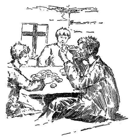 Вскакивал он чуть свет. Работал неутомимо, как лошадь в вороте, не глядя на усталость. Рано утром, до восхода солнца, Федоров взрывал лопатой огород. Потом, бросив лопату, бежал на птичник и в крольчатник. В это время прибегали и ребята. Во дворе поднимался шум. Гусыни шипели, ребята покрикивали от щипков. Кролики бились в клетках. В корытах плескалась вода. С ведрами и соломой, с лопатами и метлами ребята бегали по двору, работая не покладая рук. А когда солнце выплывало над деревней, вся «канпания» усаживалась на завалинке и принималась завтракать. Ели принесенный из дома хлеб и холодную картошку. Изредка закусывали все это солеными огурцами или кислой капустой.