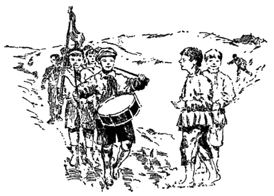 Первый пионер оглянулся назад, сдвинул строго брови, но, увидев растерянные глаза товарища, рассмеялся: