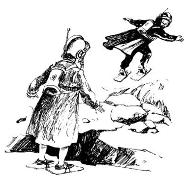 В одном месте попалась им трещина в шаг шириной. Светозар прыгнул через нее и… пролетел метров пять.