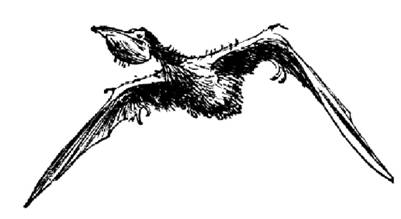 Под этими кактусами ютились еще растения, больше похожи на мох. Вдруг в воздухе раздался свист, как будто кто-то сильно щелкнул кнутом. Первое животное! Оно только что поднялось из болота и улетело к горам, медленно, неуклюже. Бросалось в глаза, что крылья его слишком большие, длинные, а тело покрыто не перьями, а шерстью.