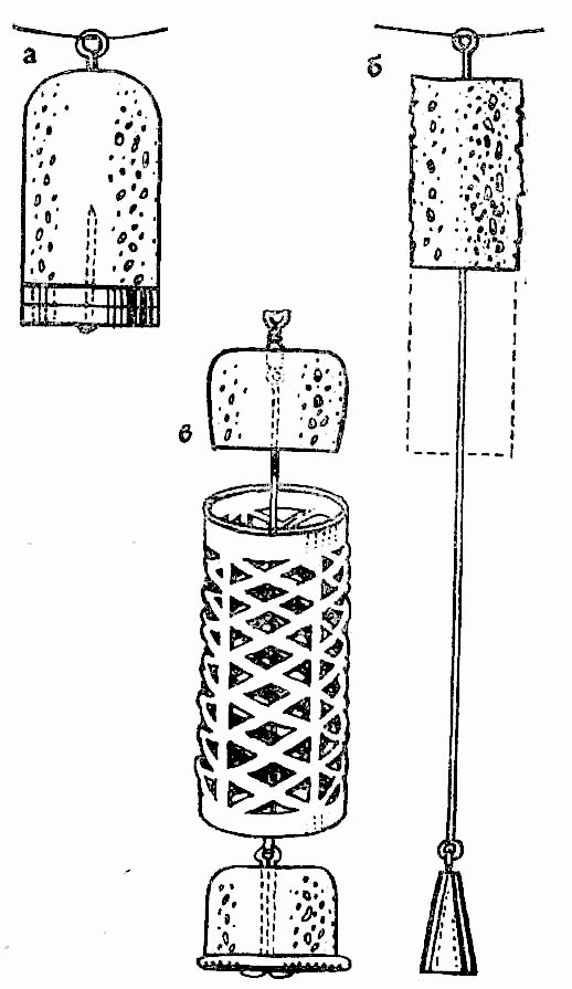 26. Переворачивающееся грузило; а – простой тип; б – тип с антенной; в – в сочетании с кормушкой