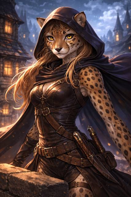 Потому что лицо было не человеческим. Кошачья морда с пятнистой шерстью, тёмные разводы на золотом. Острые уши торчали над макушкой, подрагивая при каждом звуке. Глаза янтарные, с вертикальными зрачками, которые сейчас были расширены от адреналина. На поясе – ножи в потёртых ножнах, и я не сомневался, что она умела ими пользоваться.