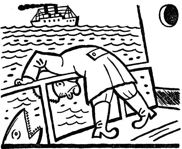 Исполнение на практике всех разнообразных движений, совокупность которых в науке и в народе обозначается термином «морская болезнь», продолжалось в общем около полутора суток. Положение на корабле было грустным, потому что никто, даже капитан, не знал, куда мы, собственно, плывем.