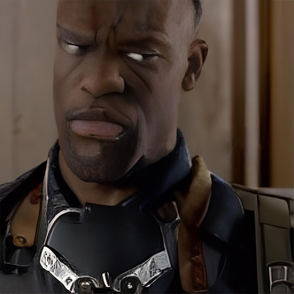 В дальней части комнаты открылась ещё одна дверь, до этого сливавшаяся со спиной. Из неё вышел здоровенный бритый негр, под два двадцать, одетый лишь в просторные белые штаны. Правая рука у него от локтя была металлическим кибер-манипулятором толщиной чуть ли не с бедро, а голый торс закрывала вживлённая бронепластина.