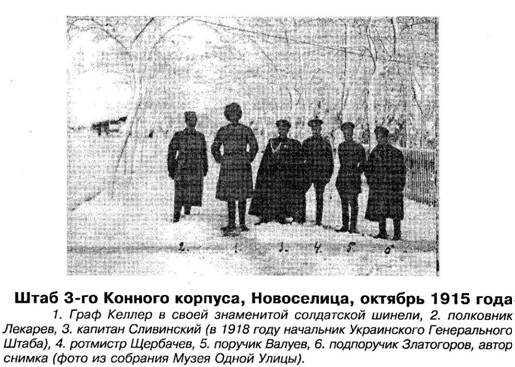 Нам кажется, что писатель имел в виду все-таки графа Келлера. Почему? Да потому, что ни 14 ноября, ни в последующие дни не было ни одного известного публике убийства, кроме… трагической смерти генерала от кавалерии графа Келлера. Даже нам, исследователям, факты гибели в те дни генералов, полковников либо подполковников неизвестны. Судьба генерала Келлера в Киеве всех живо интересовала. Уж слишком известным человеком он был. Как же сложилась судьба графа после того, как он распустил свой отряд?