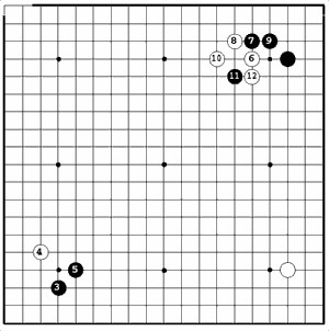 Седьмой дан сказал правду: даже для нас 101 ход чёрных был очевиден. Игра уже вошла в стадию ёсэ, то есть окончания. Белые создали в правом нижнем углу большой мешок, и для вторжения в него черные имели, пожалуй, единственную точку – ту, куда был сделан 101 ход. Кроме прыжка через один пункт, чёрные могли продлиться, и, хотя колебания в выборе можно было понять, но всё же в конечном счете разница была невелика.