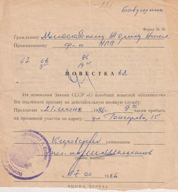 Подсунутая мне под нос повестка была оформлена по всем правилам, она обязывала меня явиться на призыв двадцать первого июня. Корешок требовал моей подписи о вручении. Раз такие дела, расписался в получении. Я не шибко боюсь службы, и я не уверен, что в обкоме поймут, если попытаюсь прикрыться ими и закосить. Тем более, что прецедентов небось не было, у нас несовершеннолетние не работают. Еще Миша Саенко в отпуске оказался до кучи. Таким вот образом через две недели я оказался на городском сборном пункте, а потом и в сапогах.