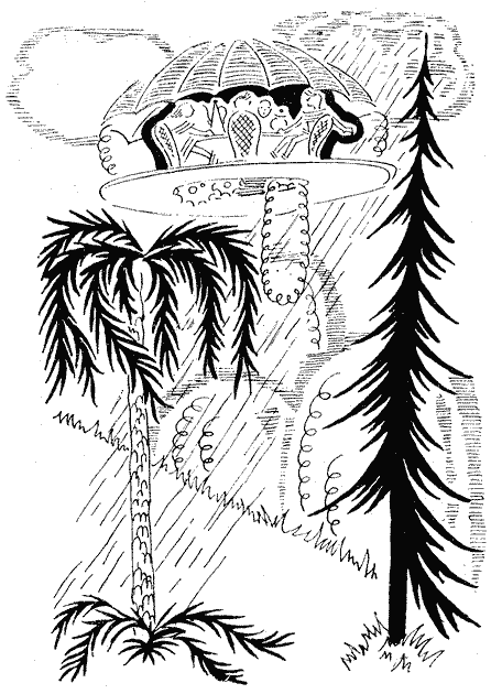 З-за круглого обрію спокійно й повільно випливли два стрункі веретена – космольоти з дослідниками і вченими, яких діти нещодавно бачили в Головному Залі Стартової вежі. Перший космоліт – «Альфу» вів Марім, другий – «Бету» – Орм Согго.