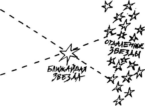 А что с третьим пунктом? (В нем говорится про измерение расстояния до ближайшего факела.) Замерить расстояние до ближайшего факела относительно просто. Но вот как быть с ближайшей звездой? Ну, например, воспользоваться методом параллакса: наблюдать, как звезда движется на небе, пока Земля обращается вокруг Солнца.