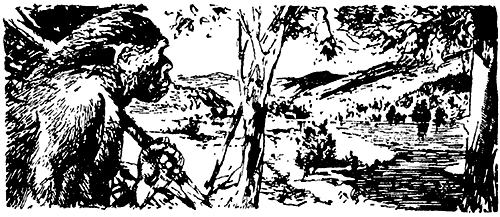 Люди долго смотрели на долину. Ведь они пришли сюда впервые. Их племя совсем недавно переселилось в эти места. Раньше они жили далеко отсюда. Там у них была теплая и сухая пещера, богатые охотничьи угодья, изобилие плодов, вкусных кореньев и клубней. Но шло время и меньше становилось лакомых растений, разбегалась непрерывно преследуемая охотниками дичь. Голод все чаще заглядывал в пещеру их племени, пока наконец им не осталось ничего другого, как покинуть насиженные места в поисках новой родины. После долгих скитаний они нашли другую пещеру и вот сейчас старались определить, богат ли пищей край, где они хотят обосноваться, и не живет ли уже здесь какое-нибудь другое племя. Ведь если это племя сильнее, оно наверняка не допустит, чтобы вторглись в его охотничьи владения, и будет защищать их в упорной борьбе. Поэтому, проходя по новым местам, охотники были очень осторожны.