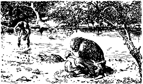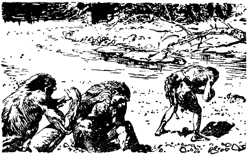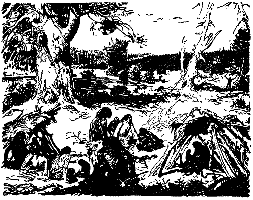 Долго сидели охотники на берегу реки, отбивая из конкреций кремня топоры и другие орудия. Они так углубились в работу, что не заметили даже, как солнце стало клониться к западу.