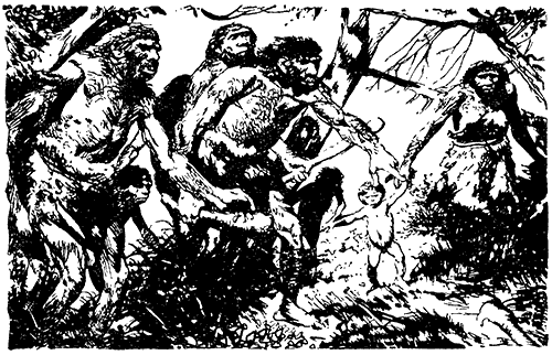 К стоянке спешит молодой охотник. Пот струится по телу, он тяжело дышит, но продолжает бежать. Перескакивает через ствол поваленного дерева, переходит вброд болото, продирается сквозь густой кустарник – мчится напрямик, пренебрегая опасностью. Вот уже виден костер и сидящие вокруг соплеменники. Остановившись, охотник приложил ко рту ладони и закричал, а когда люди, схватив острые каменные топоры и тяжелые дубины, проворно вскочили, подал им руками знак, что опасности нет, и опять побежал.