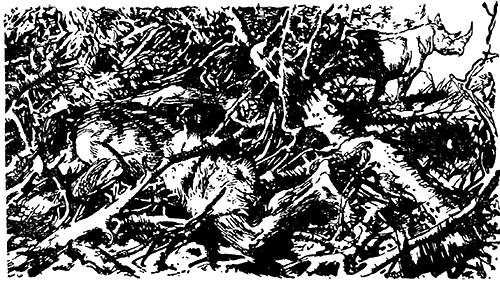 Женщины с громкими криками разбегаются, а мужчины хмуро стоят вокруг своего товарища. Боль и сострадание переполняют их сердца, но они обязаны владеть собой, потому что они – мужчины, охотники. Они должны скрывать свои чувства.