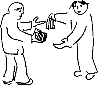 Купить вещь в магазине, оплатить и получить услугу (сходить на концерт или отдать сапоги в ремонт), подарить книгу, завещать рояль внуку, взять в банке кредит, положить деньги в банк под проценты, купить билет и улететь на самолете, купить дом, оказать услугу за плату.