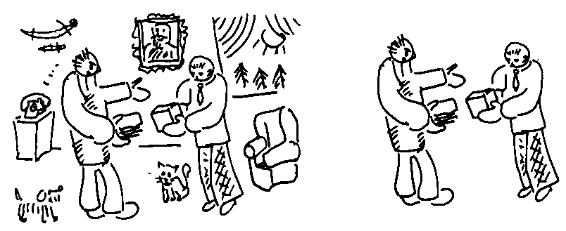 Препятствие преодолено посредством перехода на новый, более высокий уровень. Придумайте сюжеты для каждой картинки.