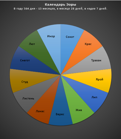 В мире Эоры годы считаются вёснами. В году тринадцать месяцев – 264 дня. В каждом месяце по 28 дней, разделенных на четыре недэи* по 7 дней.