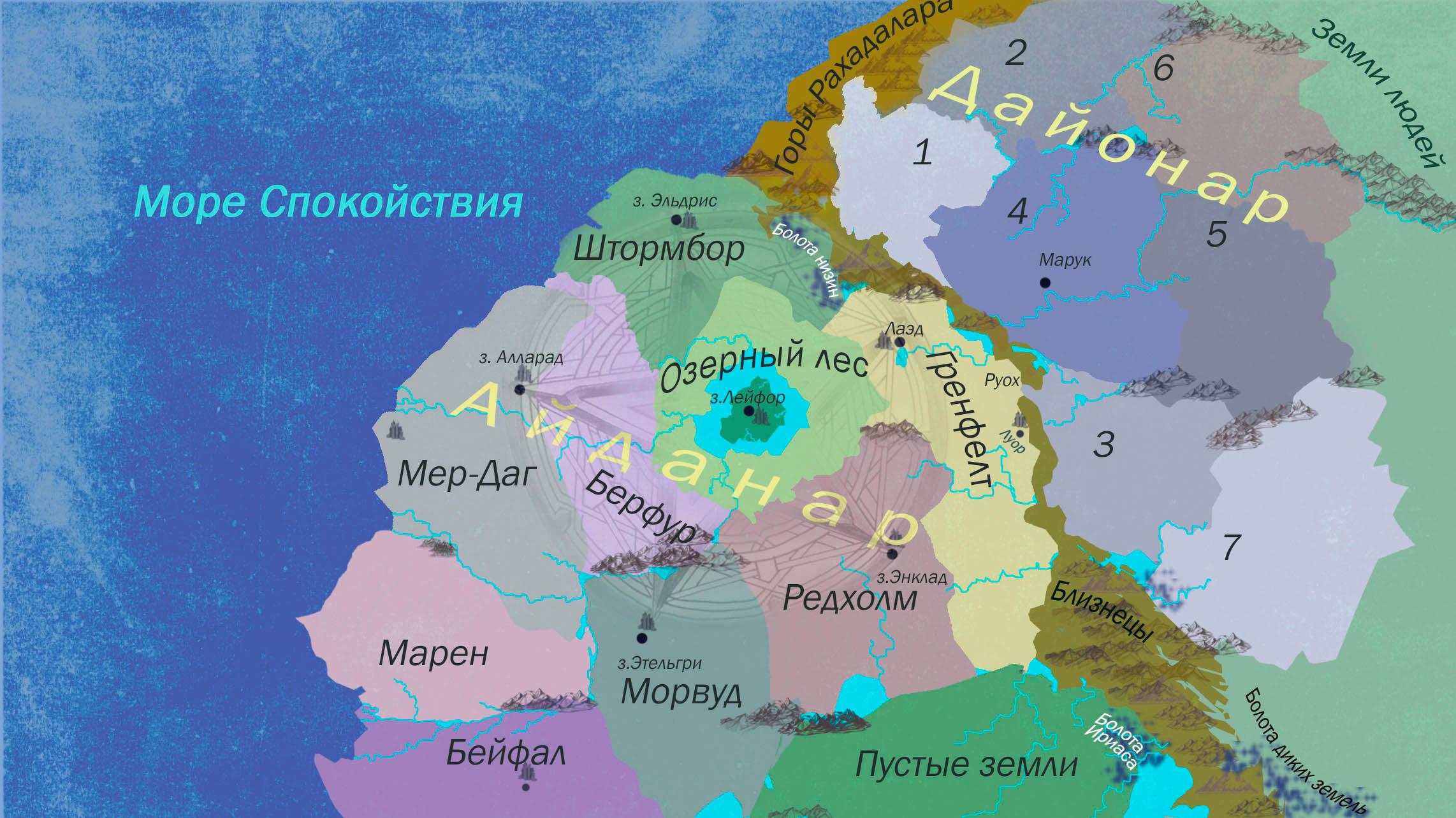Королевство Айданар включает в себя восемь (8) провинций и одно независимое королевство – Озерный Лес.