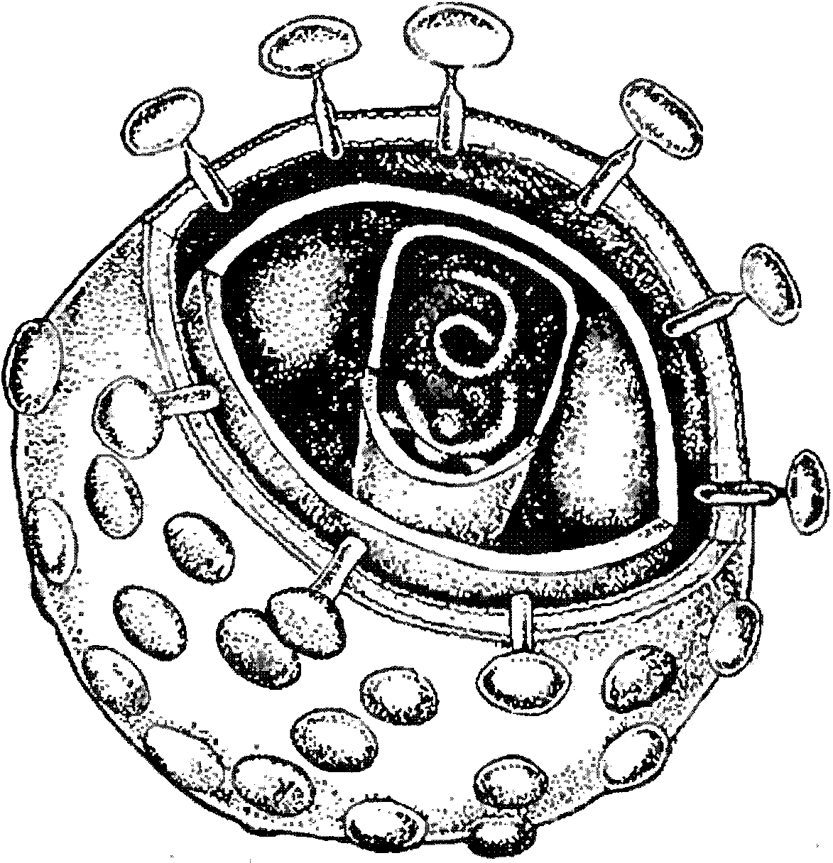 Возбудитель гриппа за один цикл размножения производит около 100 новых вирусных частиц. По мере созревания они поднимаются к поверхности клетки и медленно проникают через ее оболочку, одеваясь в нее. Клетка работает на износ и, после того как ее способность производить вирусные частицы истощается, разрушается и гибнет.