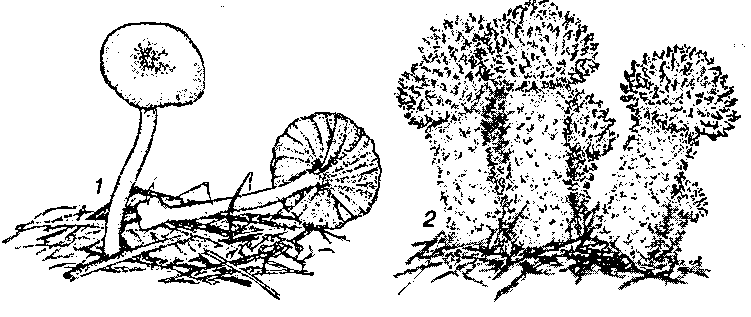Грибы–карбофилы 1 – омфалина гаревая; 2 – чешуйчатка углелюбивая