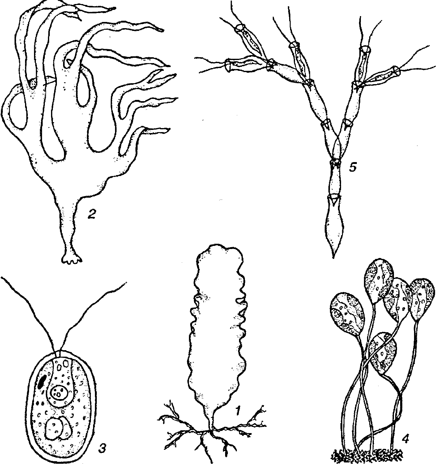 Водоросли: 1 – красные; 2 – бурые; 3 – зелёные; 4 – жёлтозелёные; 5 – золотистые