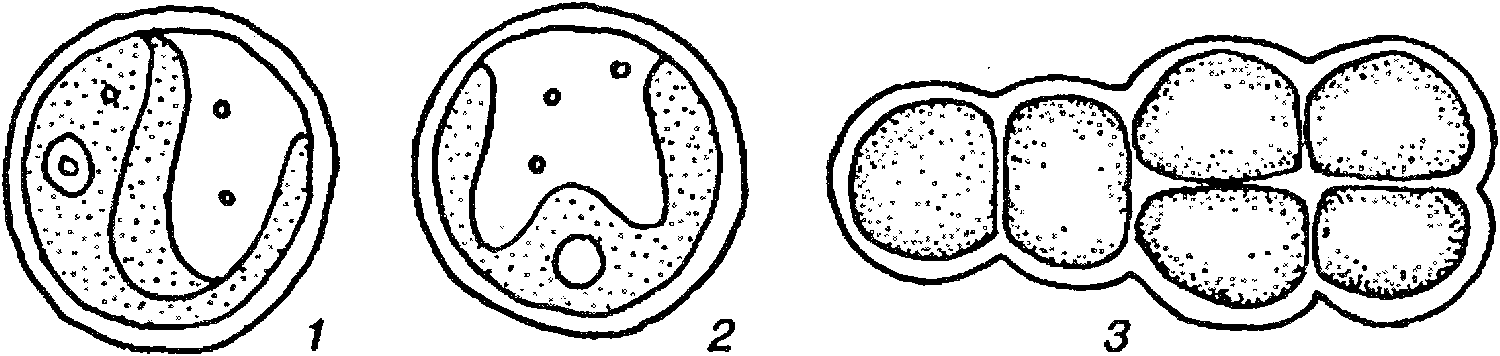 1 – хлорелла; 2 – хлорококк; 3 – плеврококк