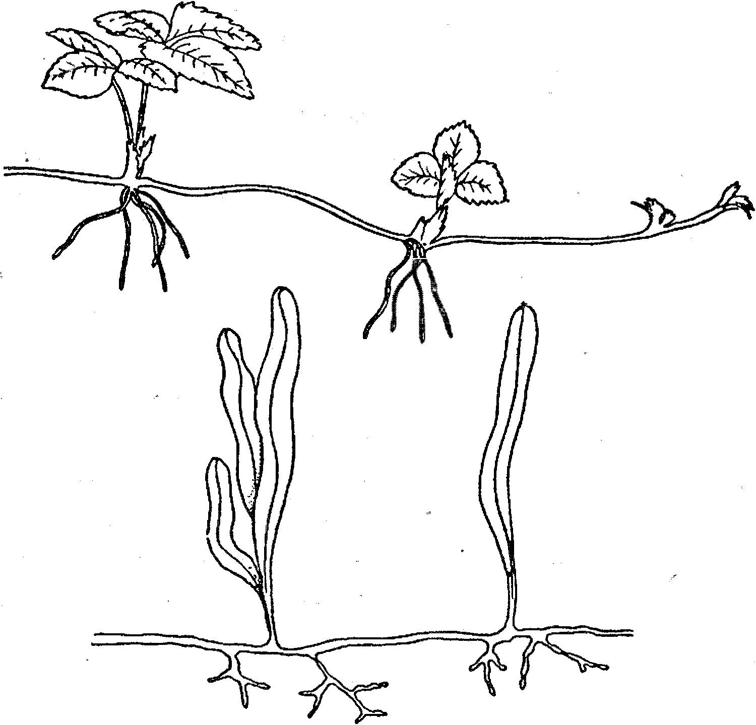 Вегетативное размножение земляники (сверху) и водоросли (снизу) «усами»