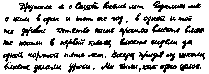 Дружила я с Сашей восемь лет. Родились мы с ним в один и тот же год, в одной и той же деревне. Детство наше прошло вместе, вместе пошли в первый класс, вместе сидели за одной партой пять лет. Всегда, придя из школы, вместе делали уроки. Мы были как одно целое Но в шестом классе Саша как бы начал стесняться нашей дружбы, но все же после школы приходил домой ко мне, и мы снова делали уроки вместе. Но в восьмом классе я уже поняла, что Сашу я полюбила и что Саша в жизни для меня – всё.
