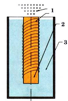 1– сверхпроводящая обмотка; 2– стержень из радиоактивного кобальта; 3– охлаждающая среда.