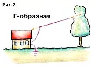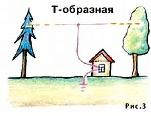 Снижение не должно касаться стен, веток деревьев. Для ввода в дом используйте керамическую или пластиковую трубку. Антенна может быть Г– или Т-образной, можно просто протянуть (рис. 2) «наклонный луч из окна дома к коньку крыши, а затем к стволу соседнего дерева (так, кстати, сделал на даче автор и получил громкий прием трех радиостанций).