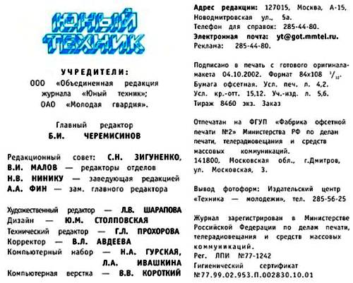 Наиболее интересные публикации журнала «Юный техник» и его приложений «Левша» и «А почему?» вы найдете в дайджесте «Спутник «ЮТ» на сайте http: Wjteh.da.ru