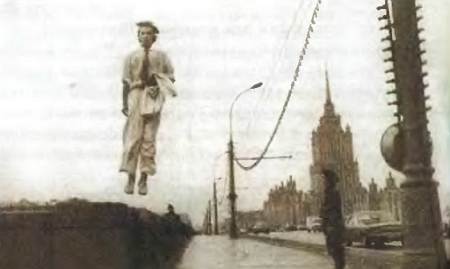 Такую фотографию при желании может изготовить даже начинающий фотолюбитель, не говоря уже об асах фотографии, вооруженных современными компьютерами. Достаточно впечатать в фотографию с чистым участком неба фигуру отдельно снятого на белом фоне человека, и вот он уже как бы повис в воздухе. Левитирует…