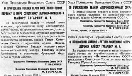 Люди затаили дыхание. Первый в мире космонавт шел по красной дорожке, чеканя шаг, чтобы доложить: «Первый в истории человечества полет на советском космическом корабле „Восток“ 12 апреля успешно совершен… Чувствую себя отлично. Готов выполнить новое любое задание нашей партии и правительства».