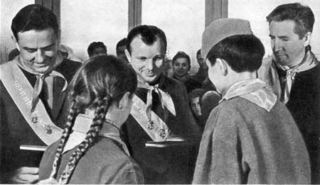 Миллионы советских школьников видели Гагарина у себя в гостях. Встречались и говорили с ребятами его друзья-космонавты. Они побывали в гостях у пионерских дружин во многих городах нашей родины.