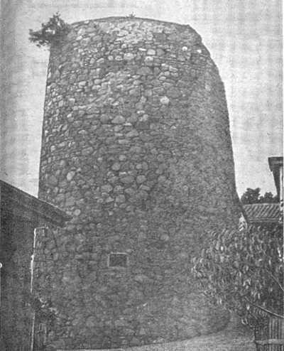 В верхней части мыса видна серая башня, сложенная по образцу средневековой