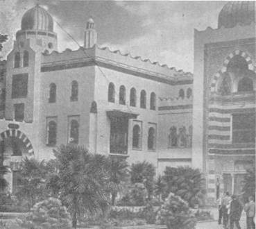мавританский. Снова вы видите зубцы над стенами, купола. Центральный фасад дворца