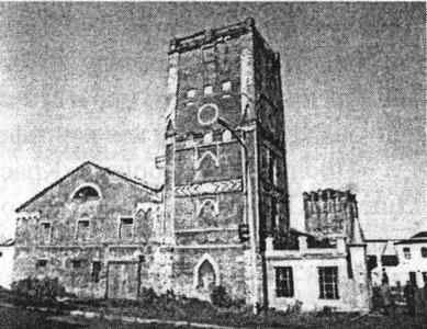 Роль маяка в усадьбе выполняла поставленная на горке около пристани каменная трехъярусная башня-беседка. Ее третий ярус был решен в виде круглой восьмиколонной коринфской ротонды, опоясанной карнизом и завершенной полусферическим куполом с вазой па вершине. Ярусы этого сооружения не имели лестничной связи, что указывает на ее чисто декоративное назначение. Функцией этого высокохудожественного архитектурного творения было привлечь внимание к усадьбе.