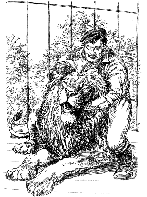 А потом начинаются чудеса. Усманов входит в клетку льва, Руслан ластится, кладет Эксонджону на плечи тяжелые лапы. То же самое делают волки и могучий великан Улан. Восхищенные посетители восторженно аплодируют простому шоферу, сумевшему не только вырастить и приручить диких зверей, но и привить им любовь и нежность к человеку.