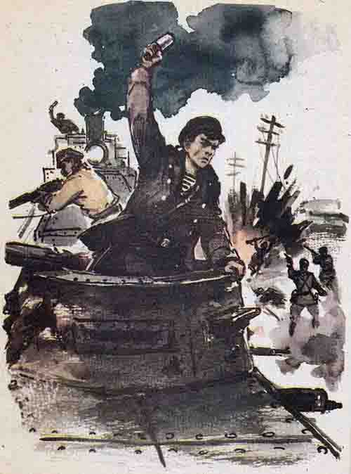 – Орудийным и пулеметным расчетам остаться и вести огонь, – приказал Железняков. – Остальные – за мной! – и выскочил из вагона.