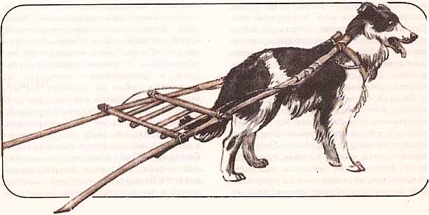На таких волокушах перевозят грузы с помощью собак индейцы Северной